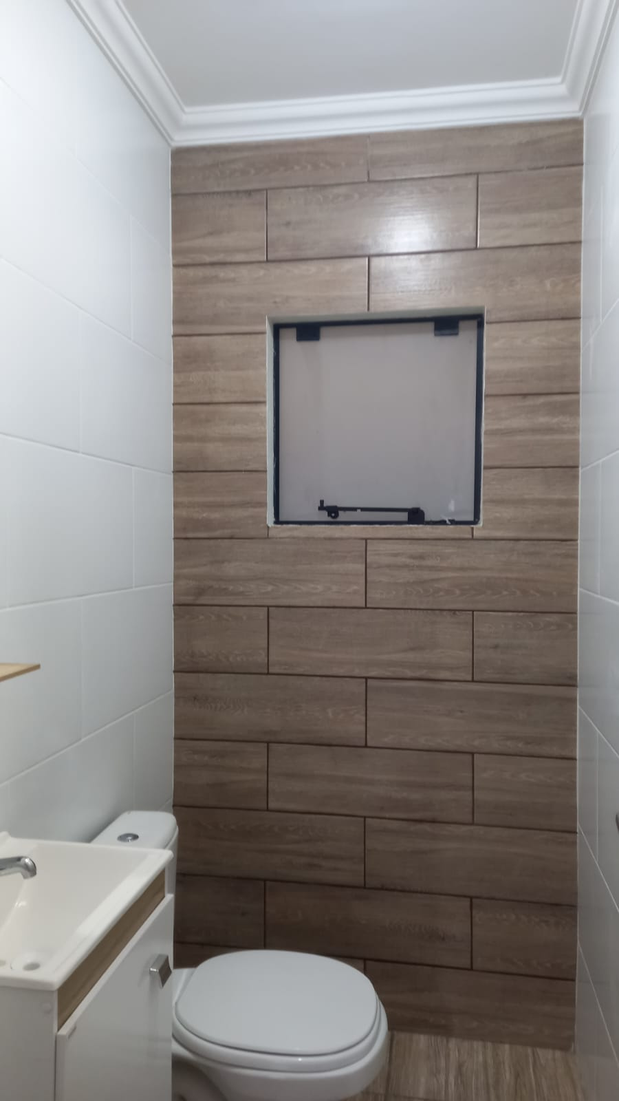 Sobrado com 2 dormitórios, sala e cozinha em conceito aberto, banheiro, lavabo uma vaga de garagem.