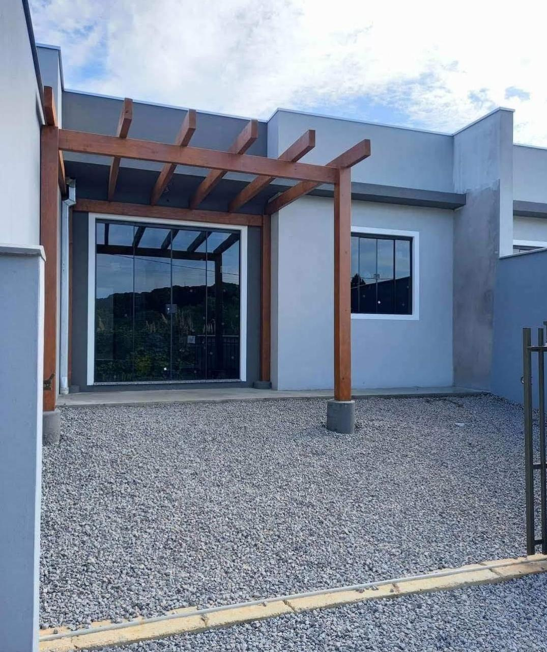 Casa geminada com 2 dormitórios, sala cozinha e lavanderia integradas,